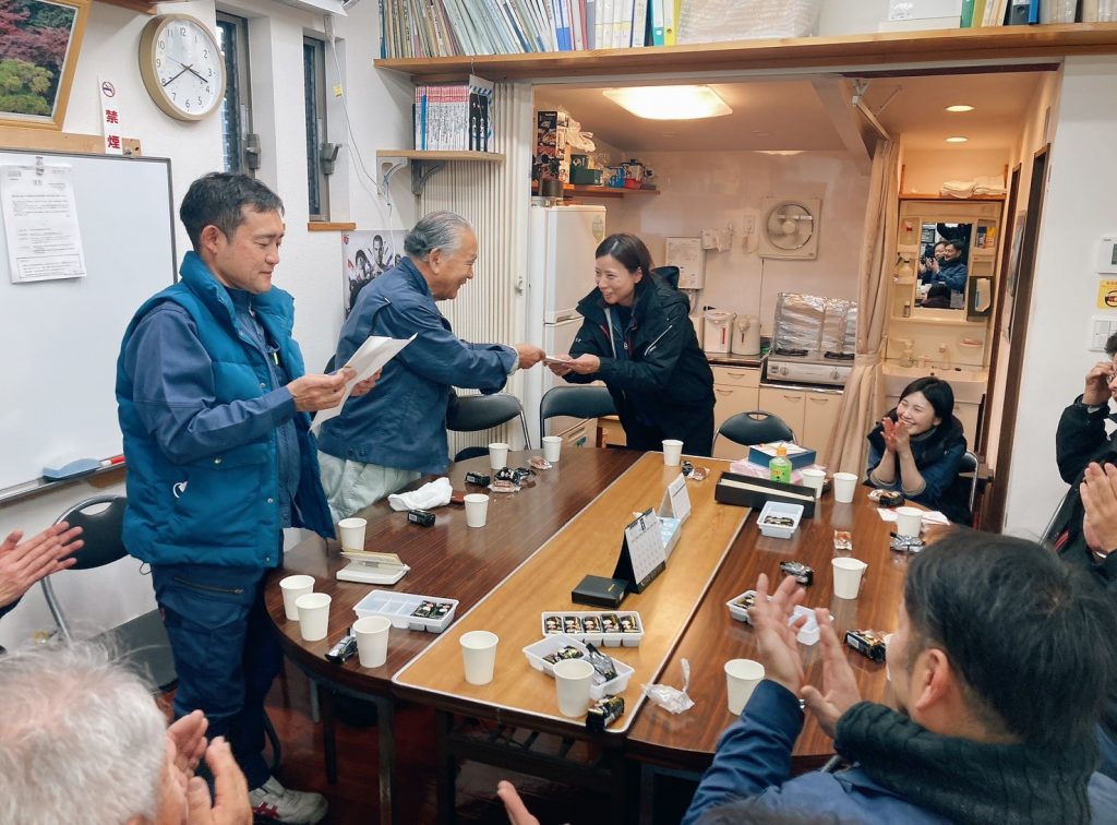年間MVPは、今年仕事面でも忙しく働いてくれ、また私的な面では最近お孫さんも生まれた社員が選ばれました。